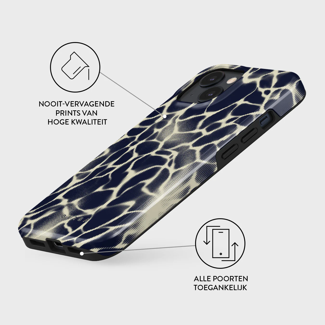- Verhoogde randen rond de camera voor extra bescherming.