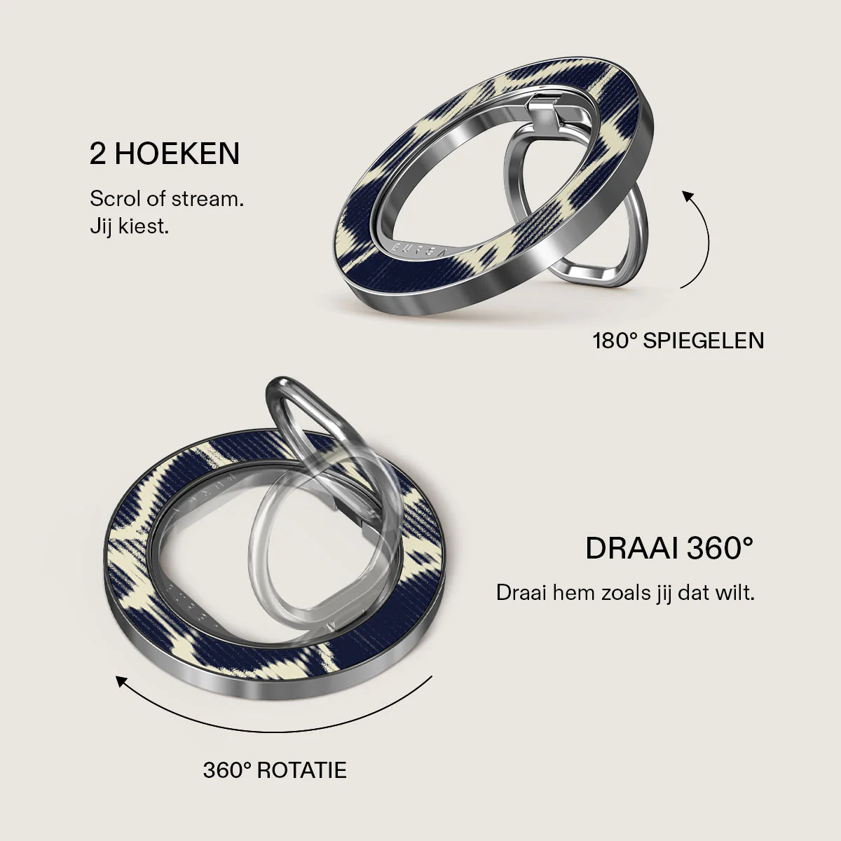 Belangrijk: magnetische telefoonringen zijn niet compatibel met Elite Mirror-telefoonhoesjes.