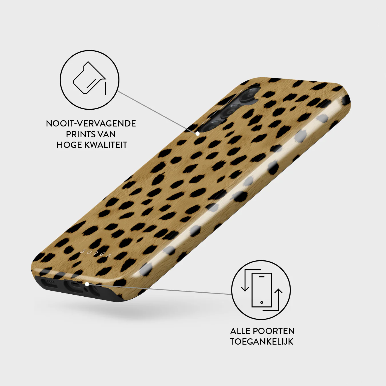 - Verhoogde randen rond de camera voor extra bescherming.