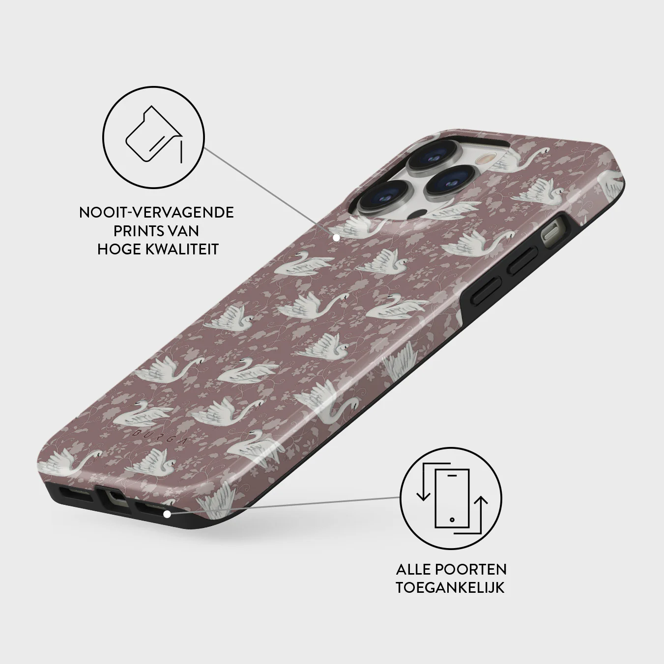 - Verhoogde randen rond de camera voor extra bescherming.