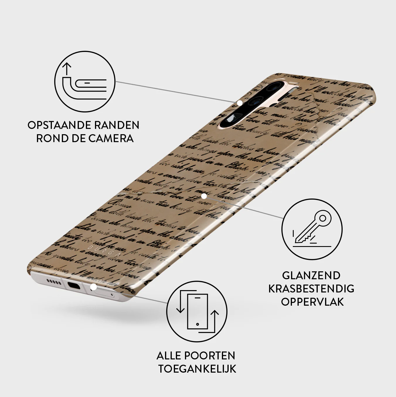 • Verhoogde randen rond de camera voor extra bescherming.