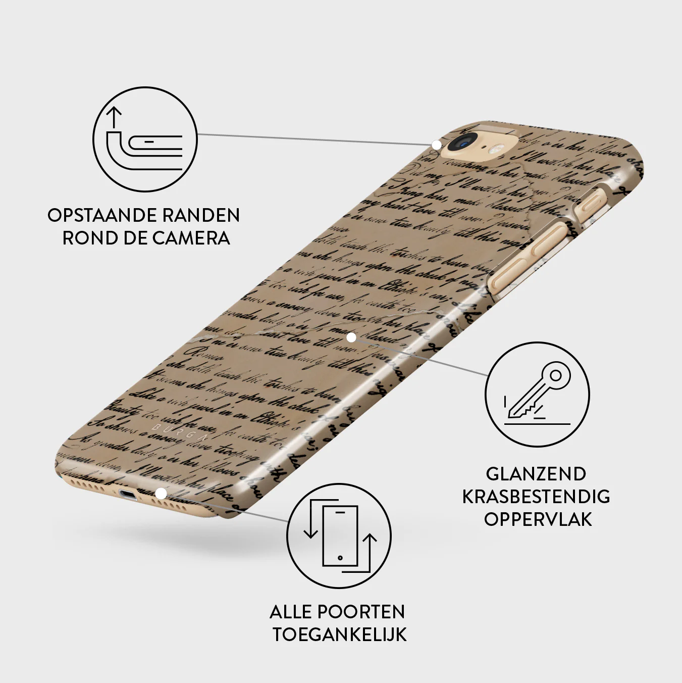 • Verhoogde randen rond de camera voor extra bescherming.