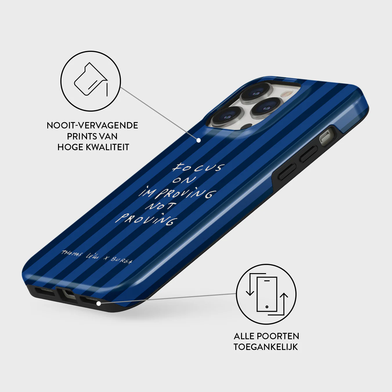 Kenmerken van dit design: handgeschreven tekst, citaat, blauwe strepen
