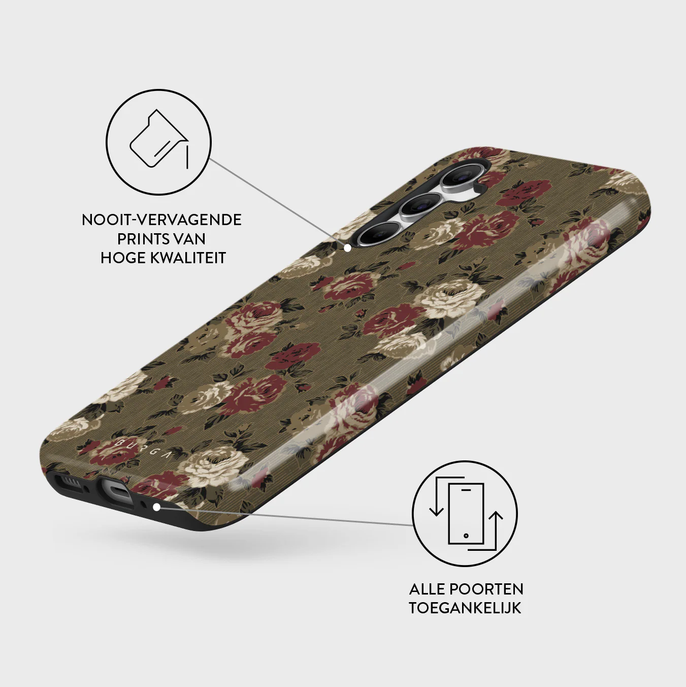 - Verhoogde randen rond de camera voor extra bescherming.