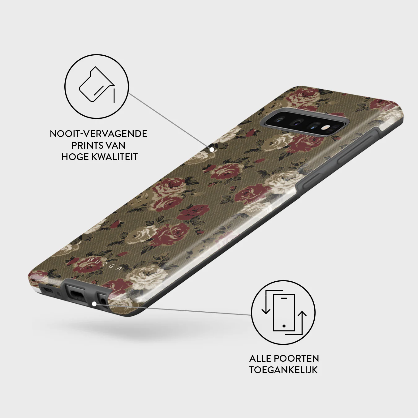 - Verhoogde randen rond de camera voor extra bescherming.