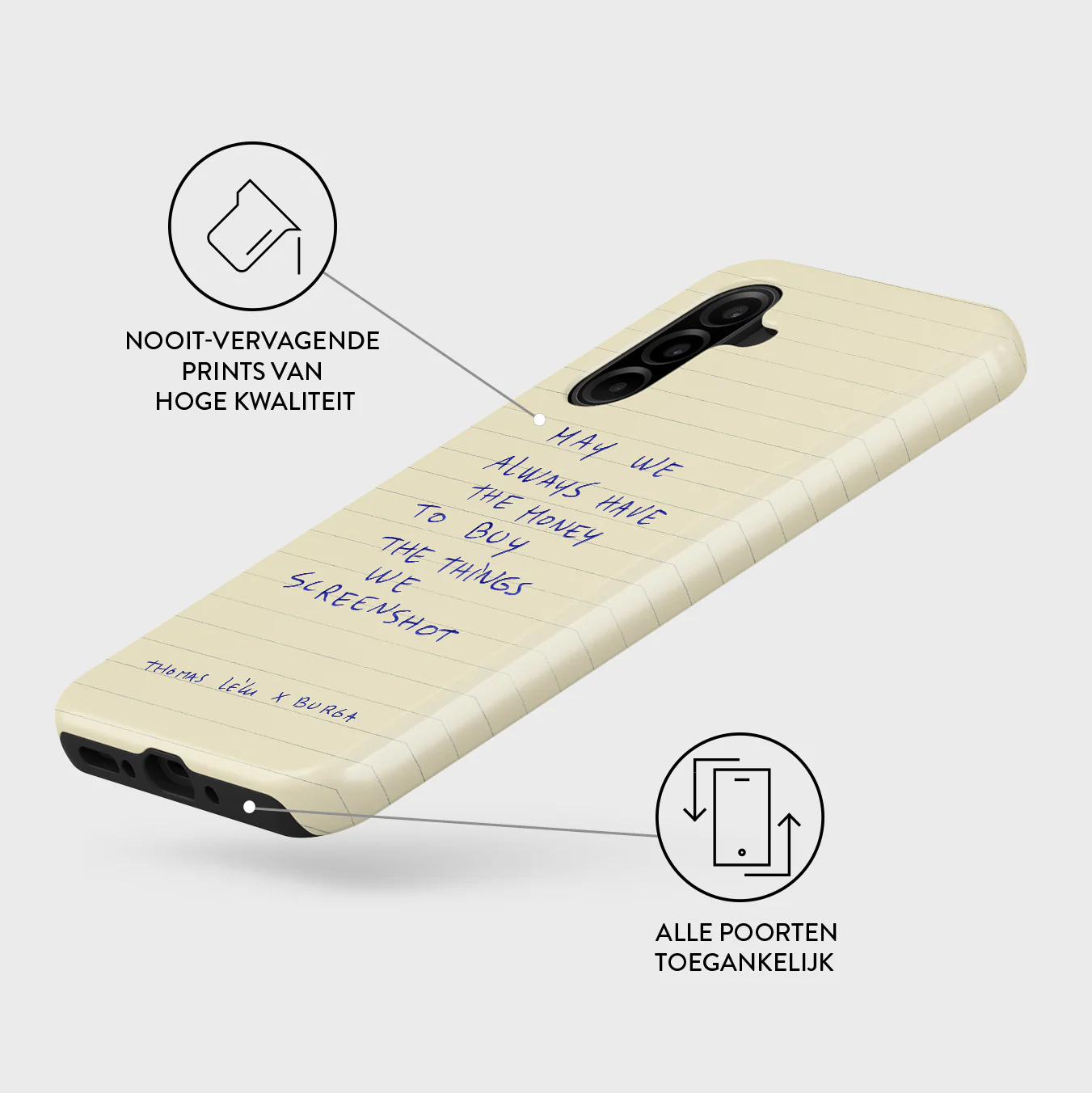 - Verhoogde randen rond de camera voor extra bescherming.