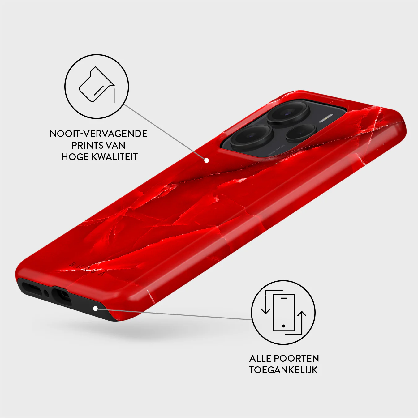 - Verhoogde randen rond de camera voor extra bescherming.