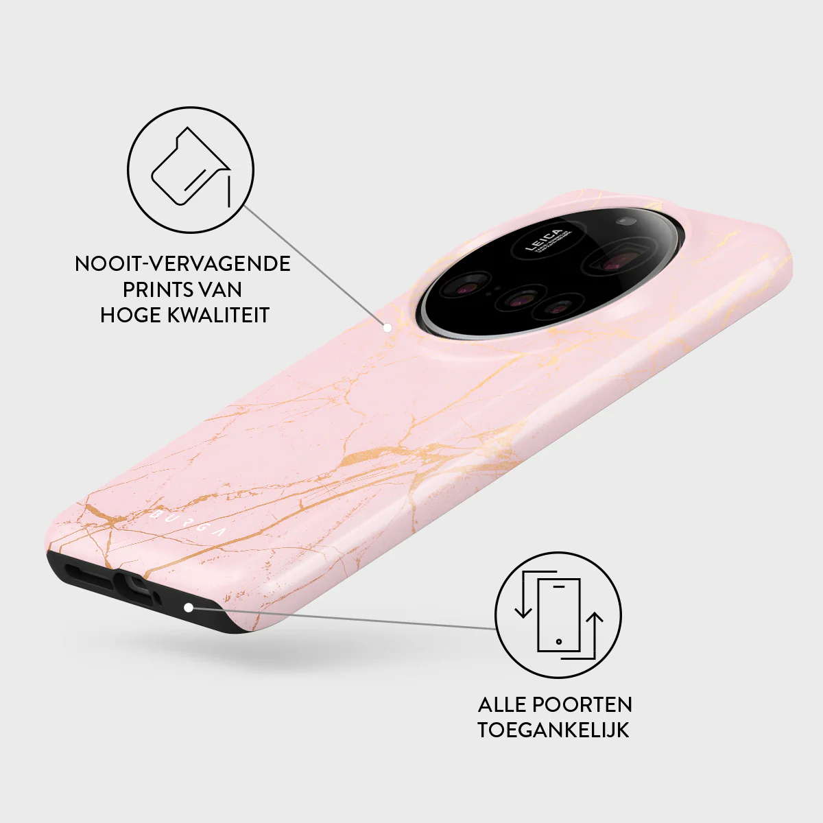 - Verhoogde randen rond de camera voor extra bescherming.