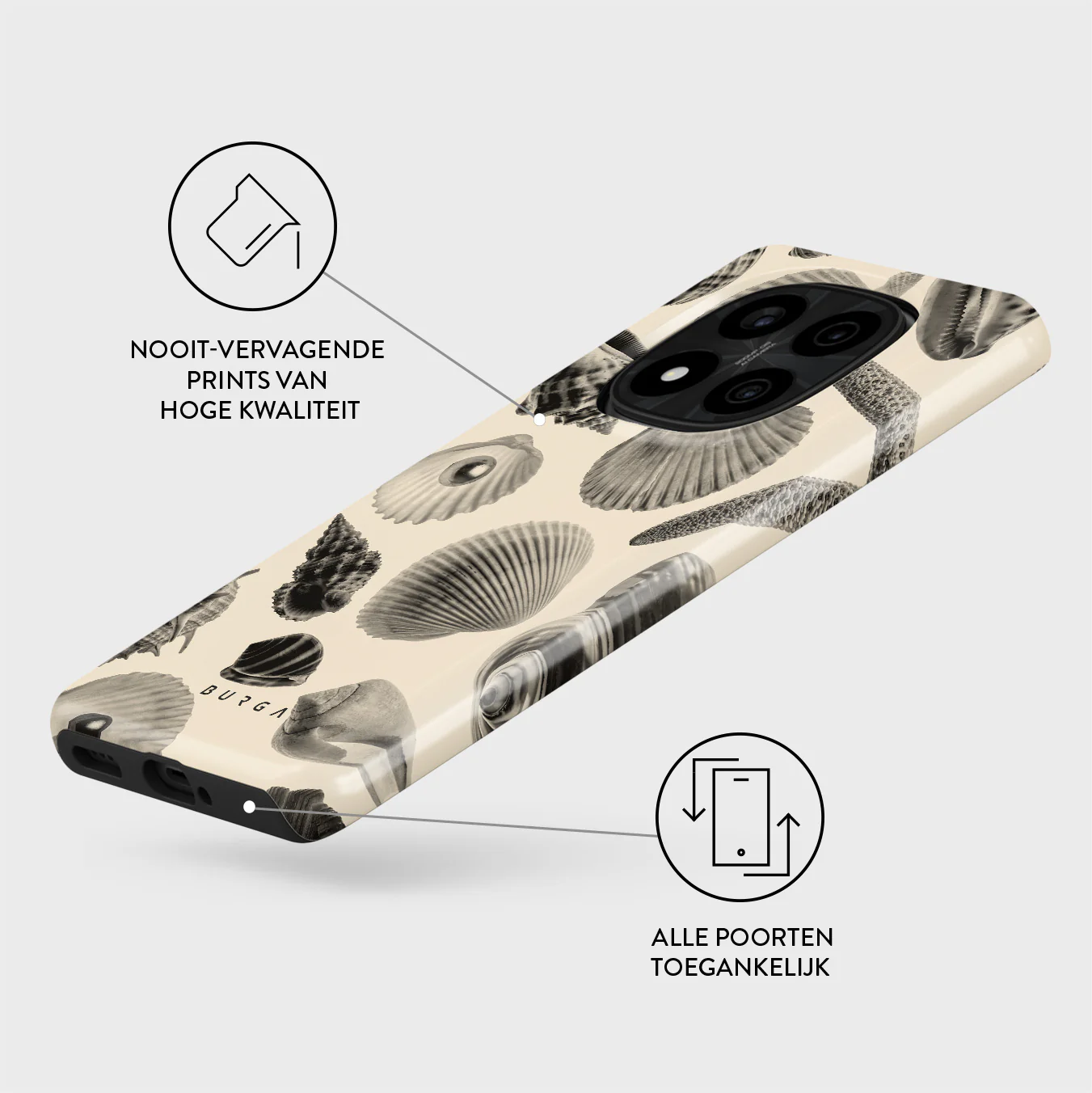 - Verhoogde randen rond de camera voor extra bescherming.