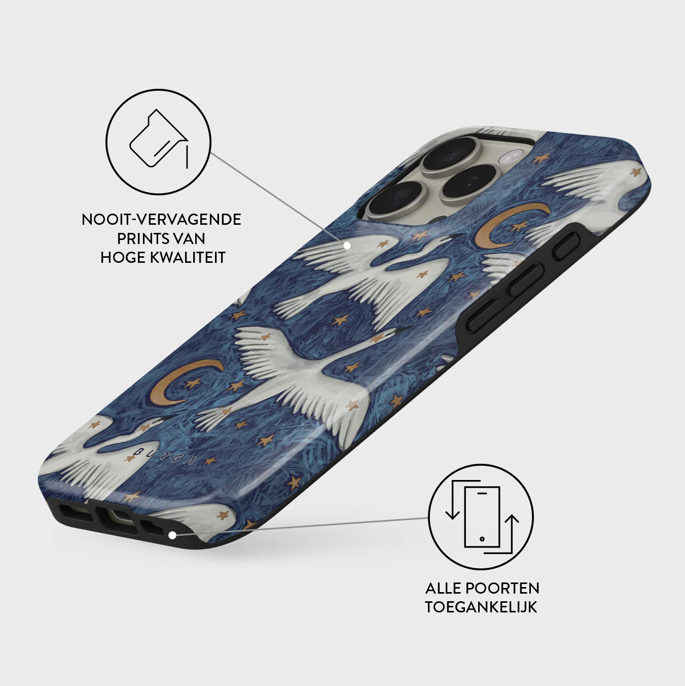 - Verhoogde randen rond de camera voor extra bescherming.