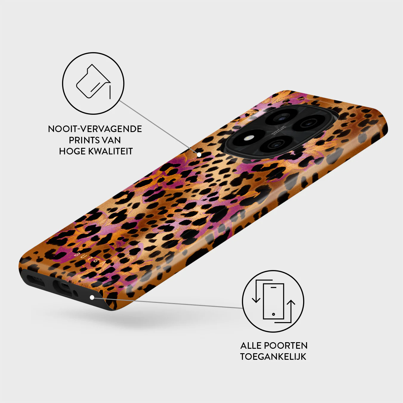 Kenmerken van dit design: luipaardprint, bruin, oranje, paars, dierenprint.
