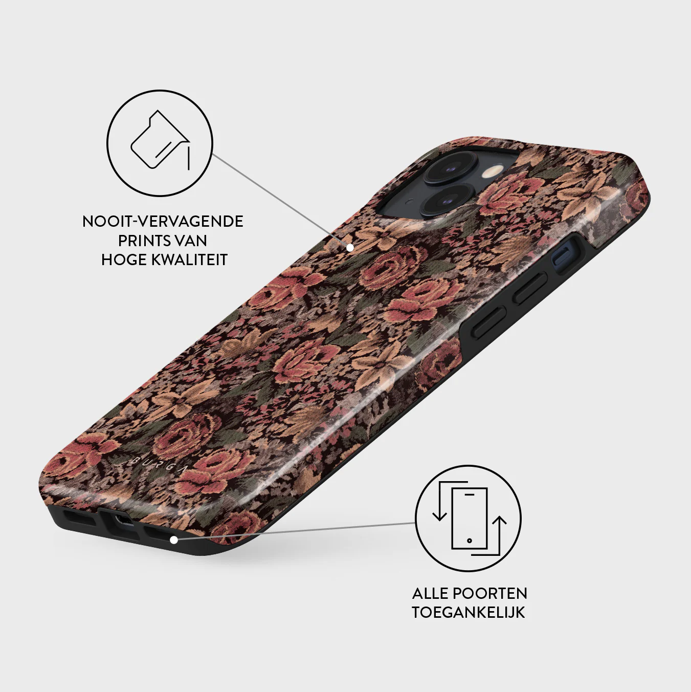 - Verhoogde randen rond de camera voor extra bescherming.