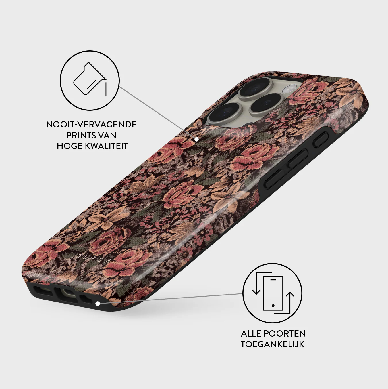 - Verhoogde randen rond de camera voor extra bescherming.