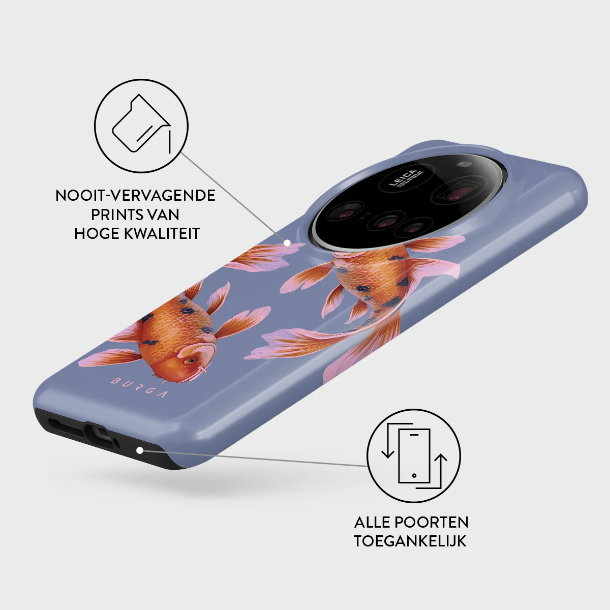 - Verhoogde randen rond de camera voor extra bescherming.
