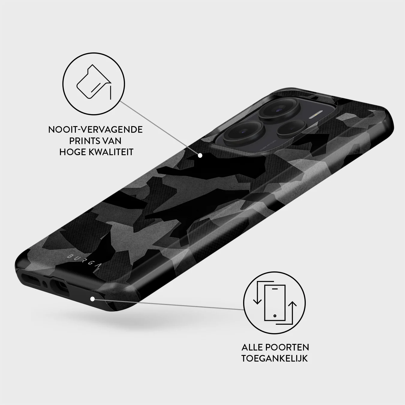 • Verhoogde randen rond de camera voor extra bescherming.